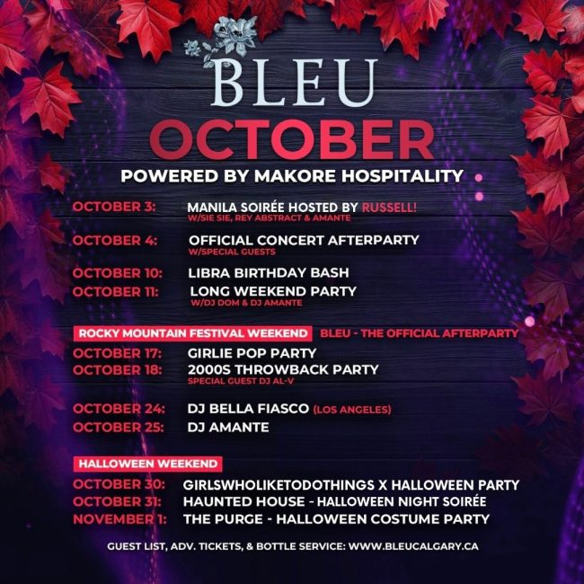* TO BOOK YOUR PACKAGE, PLEASE EMAIL: INFO@BLEUCALGARY.CA